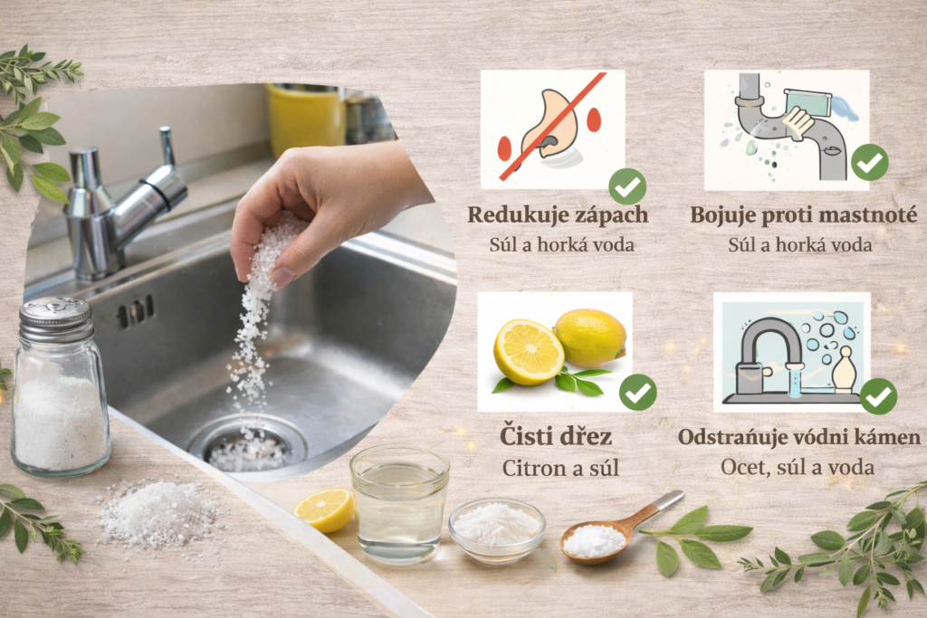 Použití soli v kuchyňském odpadu je jednoduchý a účinný způsob, jak podpořit čistotu dřezu a potrubí bez použití agresivních chemikálií. Pravidelná údržba pomocí přírodních surovin pomáhá omezit zápach, mastnotu i usazeniny a prodlužuje životnost odpadu.