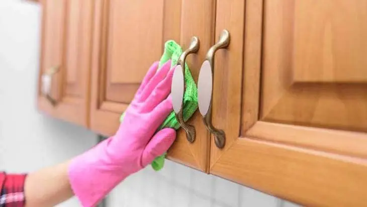 3. Krouživými pohyby otírejte dvířka skříněk.