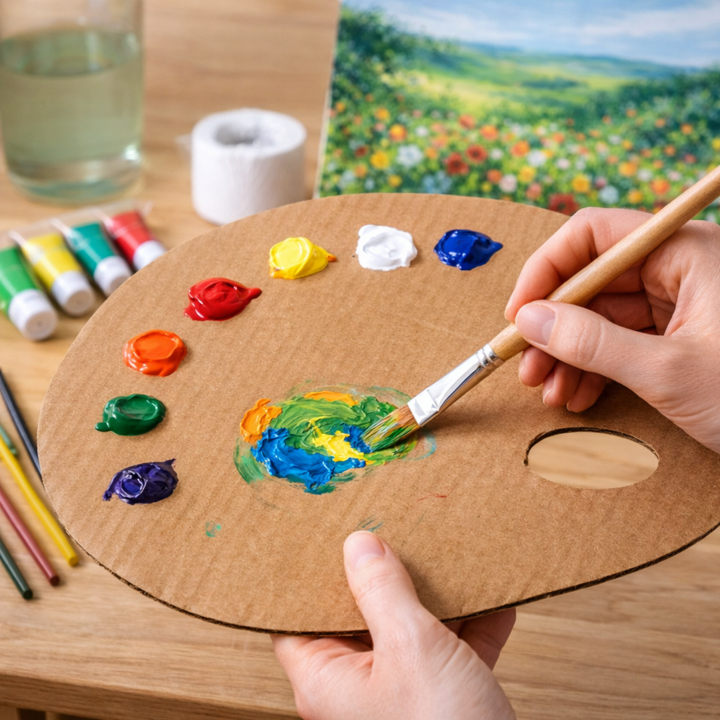 Potřebujete si namíchat barvy? Kousek tvrdého kartonu je mnohem lepší a ekologičtější než plastový kelímek nebo papírový talíř. 🖌️