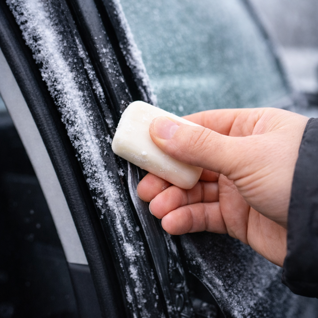 - Řešení: Před příchodem mrazů potřete všechny gumové těsnění kolem dveří vozu mýdlem. Mýdlo poté rovnoměrně rozetřete prsty.