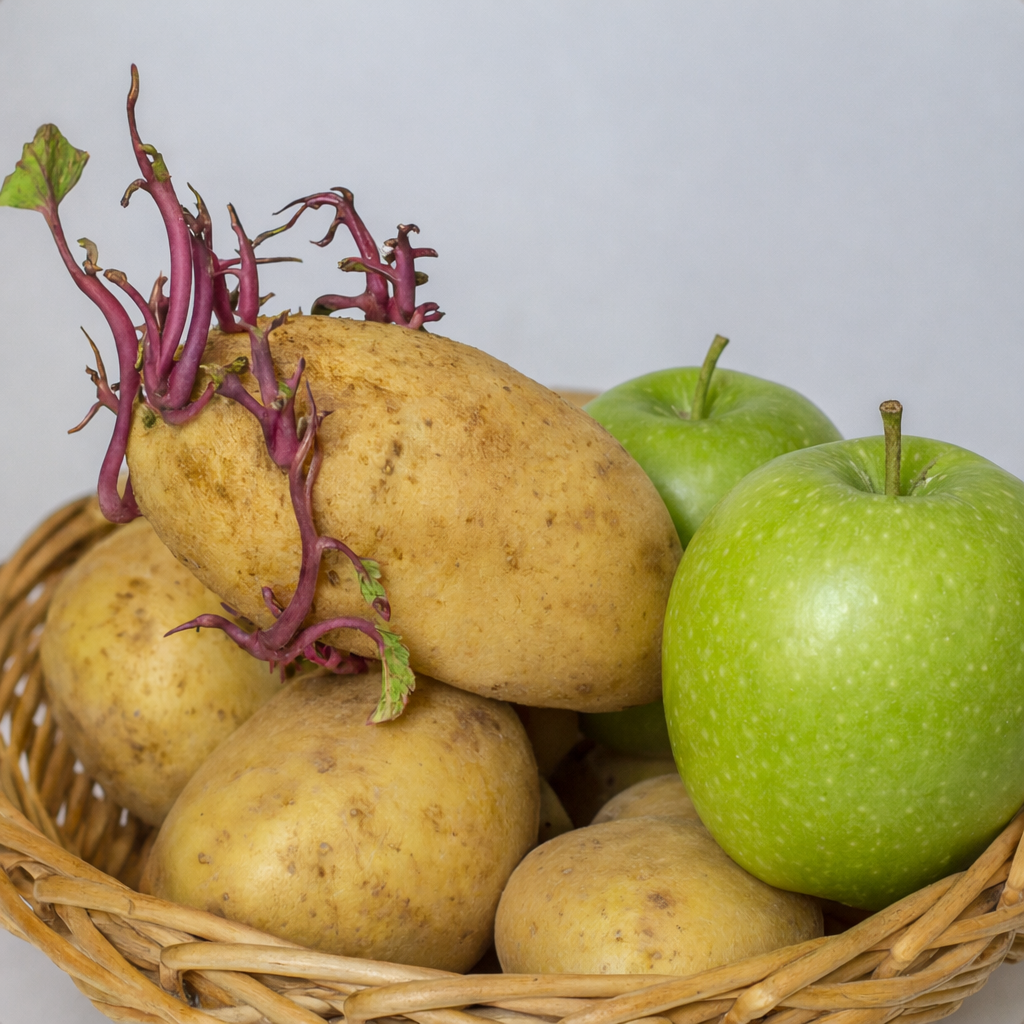 🍎 1️⃣ Jablko jako přirozená pomoc při skladování brambor