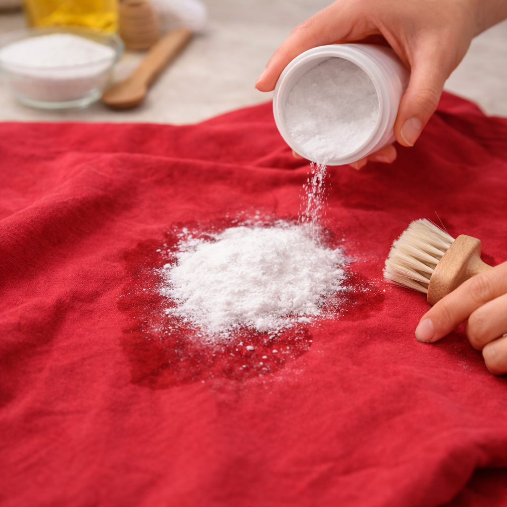3️⃣ Jedlá soda – silný přírodní absorbent na mastné skvrny 🧂