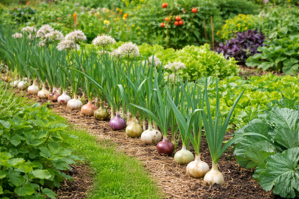 🌿 1. Česnek a cibule – přirozená aromatická bariéra