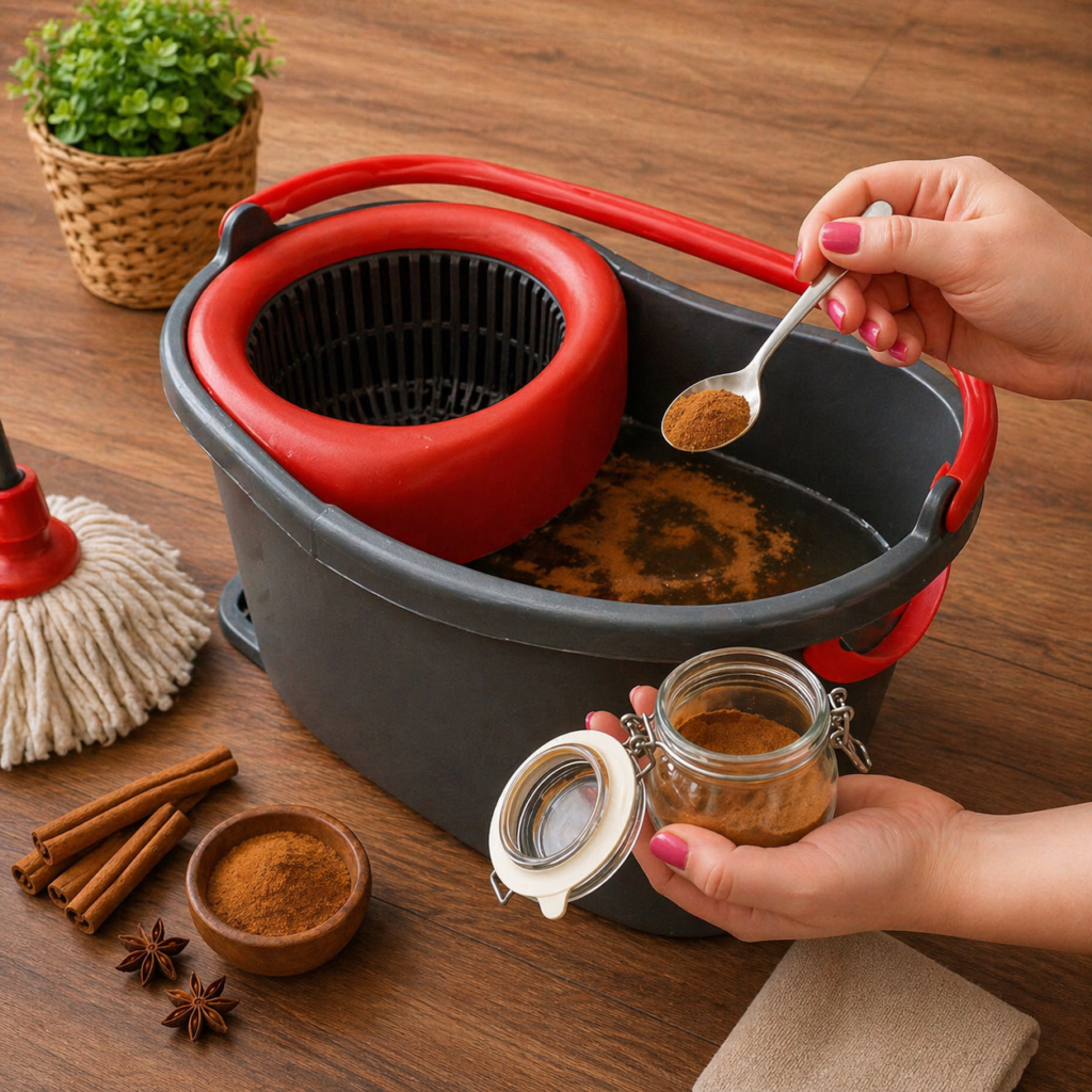 - 1 lžíce mleté skořice do kbelíku s vodou + čisticí prostředek